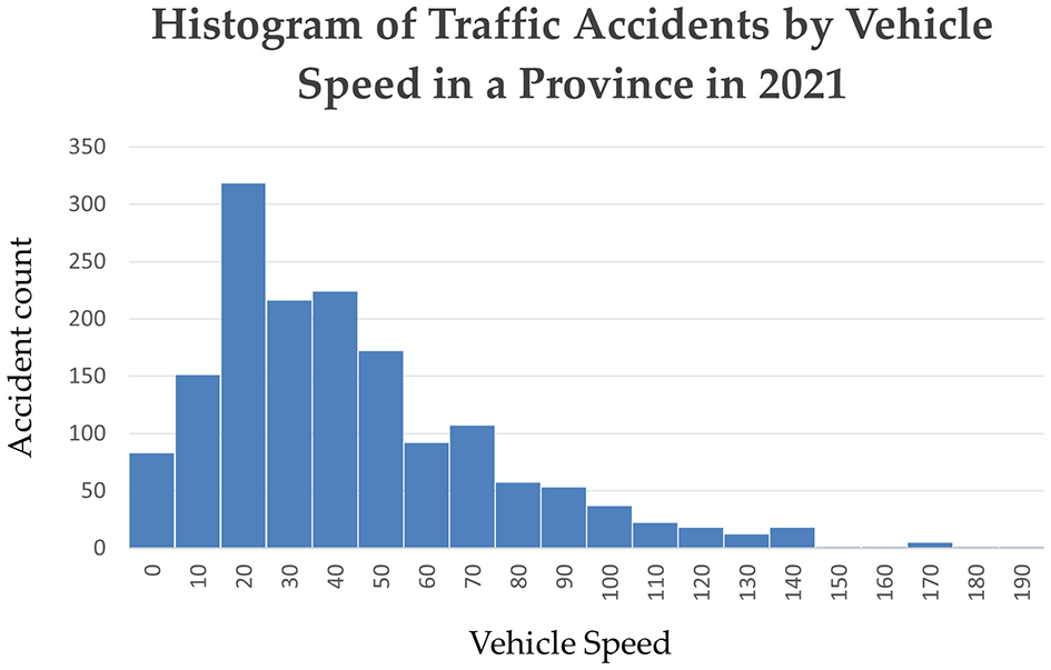 The histogram of traffic accidents by vehicle speed in a province in 2021.