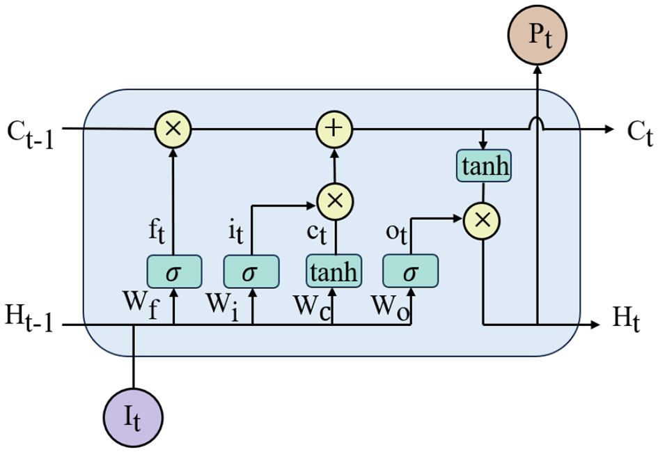 Long Short-Term Memory (LSTM) networks are a type of recurrent neural network (RNN) architecture designed for time-series data. They are remembering both long-term and short-term information, addressing the problem of traditional RNNs being unable to capture long-term dependencies in sequences (Hochreiter and Schmidhuber, 1997). The structure of the LSTM network unit is shown in Figure 5.