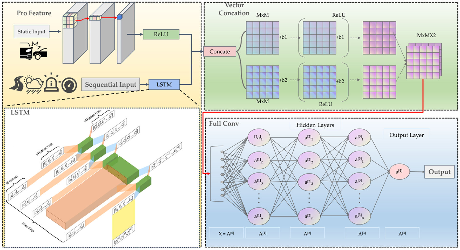Where and are the weight matrix and bias vector of the fully connected layer. Then, the output of the LSTM layer and the static feature representation are concatenated together to form a joint vector