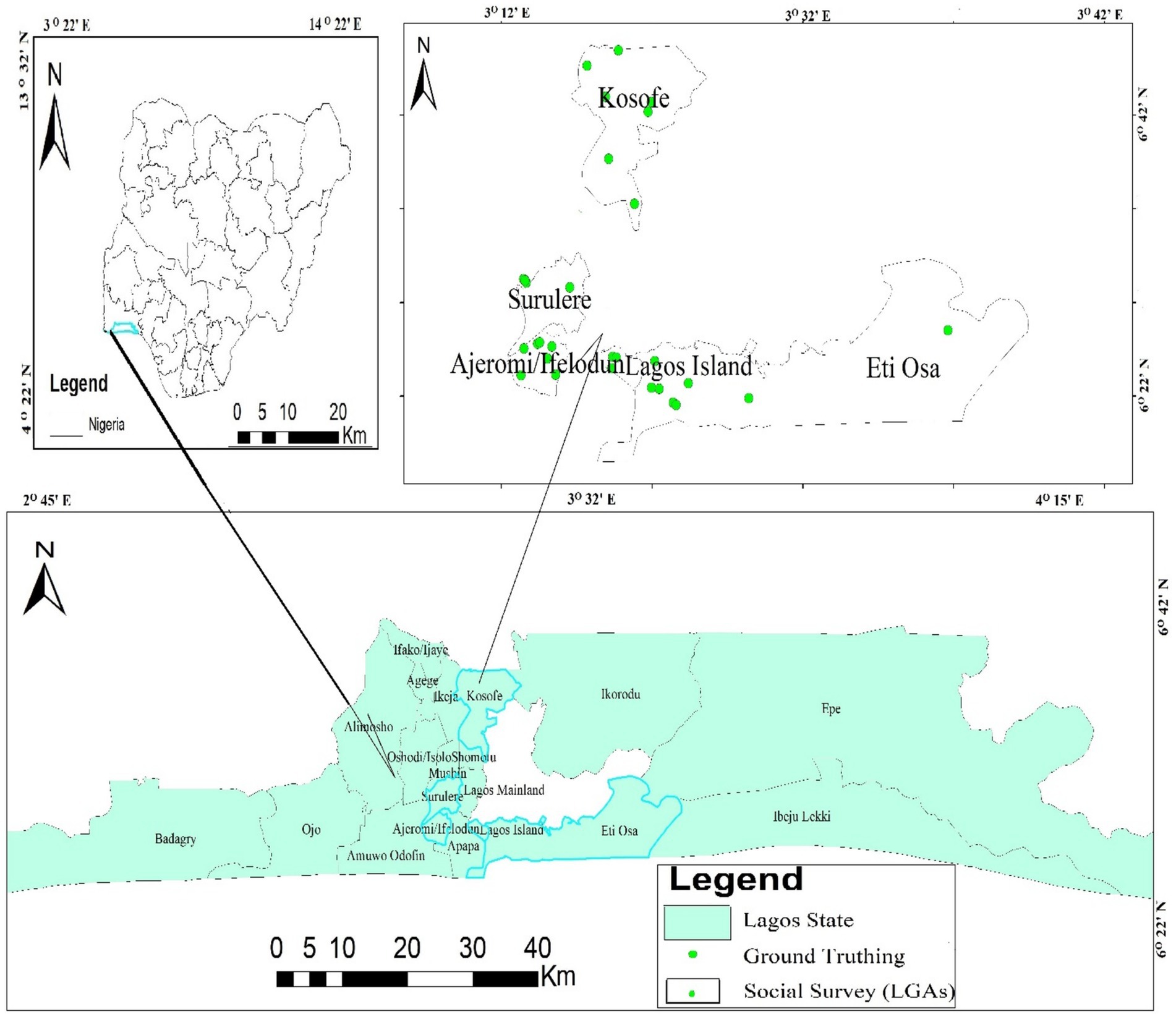 Lagos, Africa’s largest coastal megacity, faces acute flood vulnerability due to its low-lying geography, rapid population growth, and insufficient drainage systems (Ibeabuchi, 2023). Annual floods disrupt livelihoods (Oguntola, 2022), damage property, and spread waterborne diseases (Abdel-Karim et al., 2020). The 2022 floods alone displaced over 100,000 residents and caused estimated economic losses exceeding $4 billion (Lawanson et al., 2023). Poor urban planning has compounded these challenges (Aliyu et al., 2023), with many informal settlements infringing natural flood buffers, which have been degraded by human activity (Kasim et al., 2022).