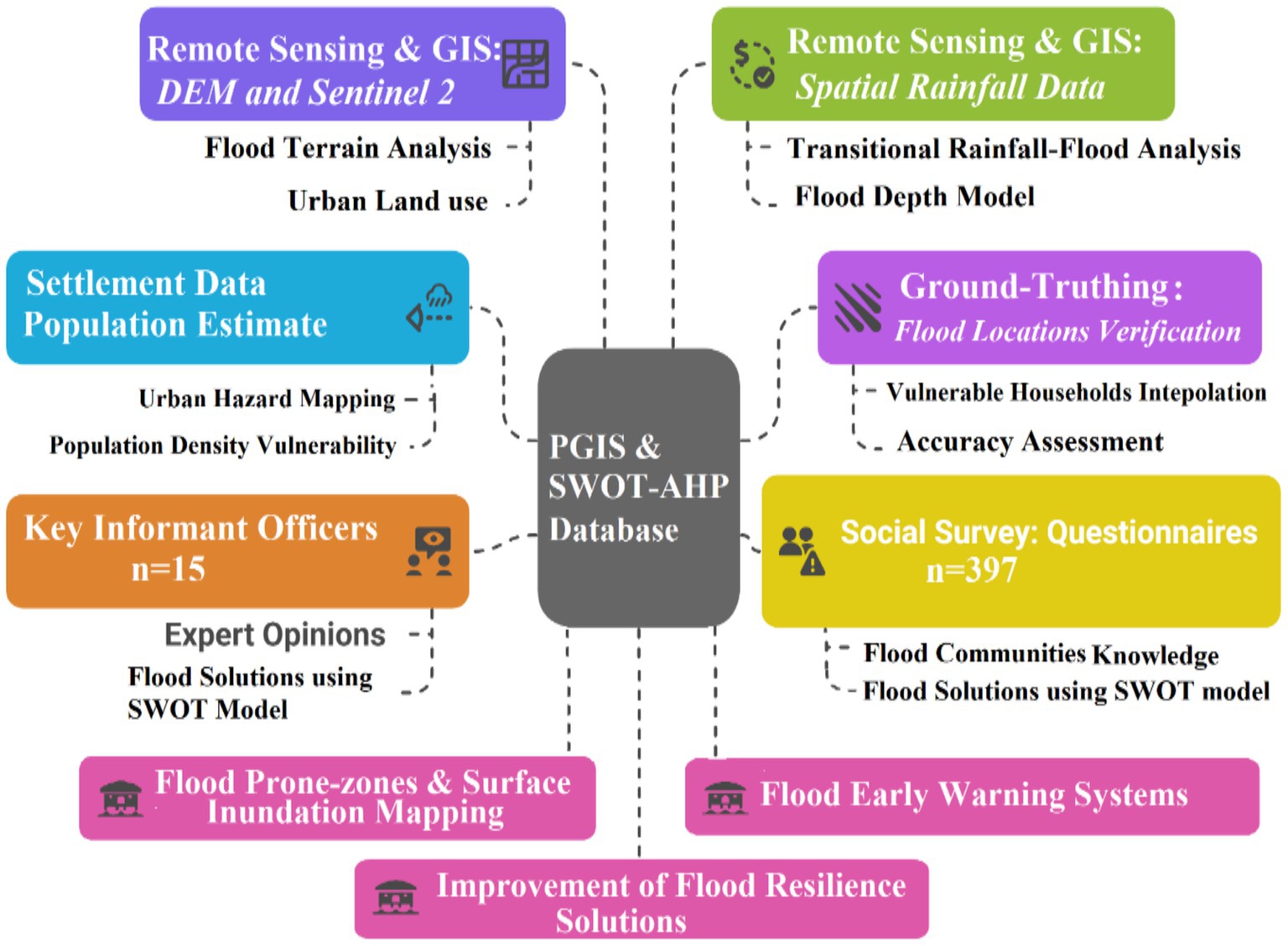 Keywords: SWOT-AHP analysis, urban flooding, vulnerability mapping, early warning system, strategic planning, urban infrastructure