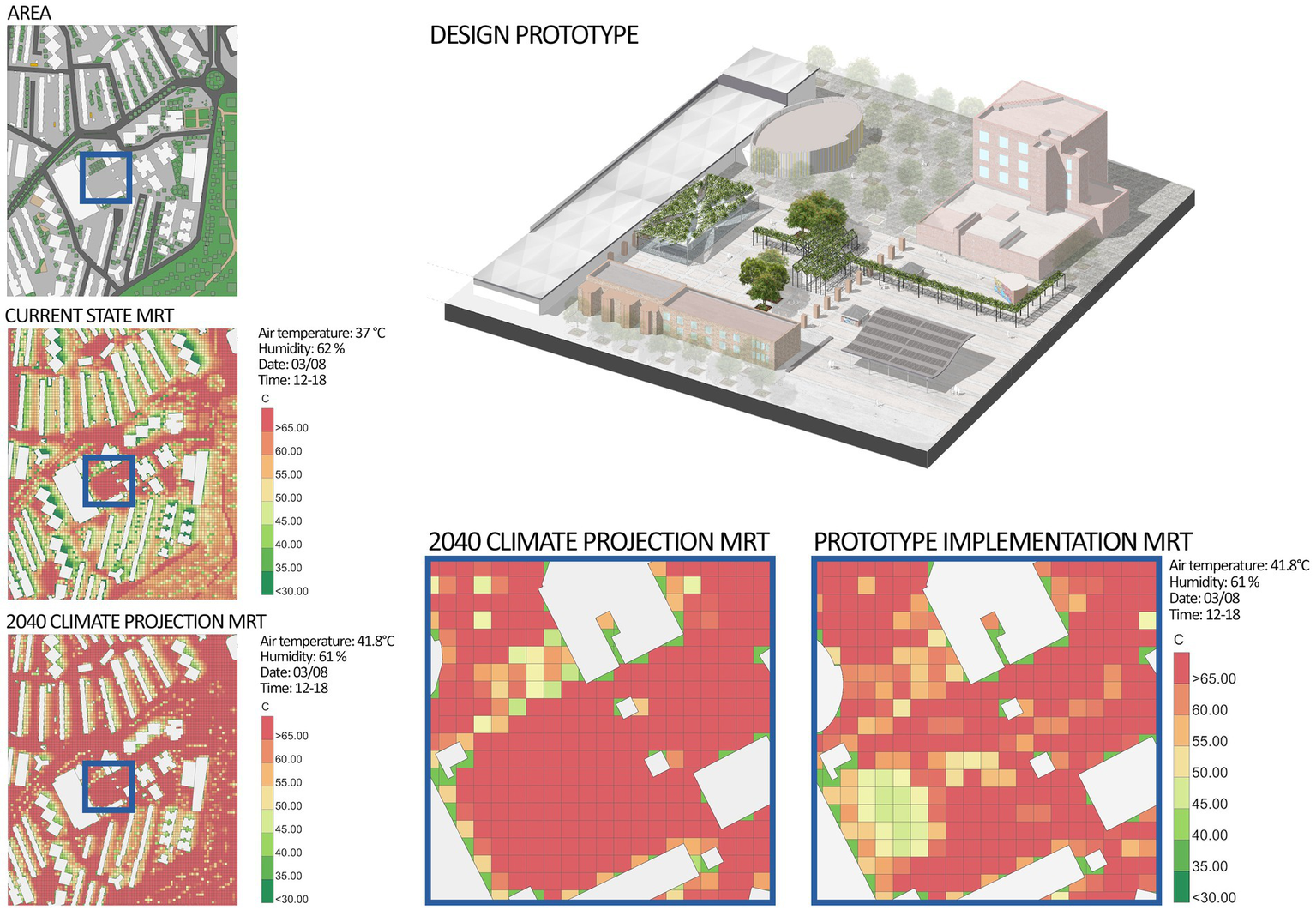 Evidence-based design, traditionally rooted in architecture and healthcare, offers a systematic framework for integrating empirical data, performance metrics, and stakeholder input into the design process (Shi, 2024; Quiñones-Gómez et al., 2025). When applied to climate resilience, evidence-based design enhances decision-making by aligning interventions with the best available scientific knowledge, modeling tools, and observed outcomes (Peavey and Vander Wyst, 2017). Yet, despite the growing availability of climate data and adaptation strategies, a persistent gap remains between research and practice (Raven et al., 2025a). Many practitioners still lack access to, or the ability to interpret, tools that can translate complex climate projections into actionable design guidance. In this context Dhar and Khirfan, 2017 identifies four main gaps that pertain to: the lack of interdisciplinary linkages, the absence of knowledge transfer, the presence of scale conflict, and the dearth of participatory research methods. A growing consensus is in advocating the advancement of participatory and collaborative action research to meet the multifaceted challenges of climate change (Dhar and Khirfan, 2017, Bremer and Meisch, 2017, Parson et al., 2025).
