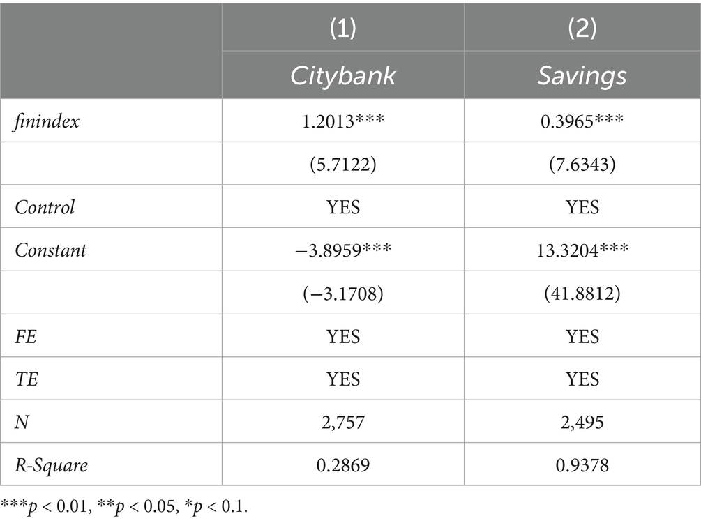 Financial constraints: The development of Fintech can alleviate information asymmetry (Mudambi et al., 2017) so that enterprises and individuals can obtain more financial resources and services at a lower cost, meet the capital needs of residents’ consumption and enterprises’ operation and production, and have substantial advantages in providing financial services for low-income and vulnerable groups (Xie et al., 2018). In addition, Liu and Lu (2023) found that regional financial foundations, such as deposits and loans of financial institutions, have a significant role in promoting regional economic resilience (Liu and Lu, 2023). This paper argues that improving financial scale is one of the mediating effects of Fintech on economic resilience. Household deposit in financial institutions is the proxy variable for financial constraints to indicate the availability of capital.