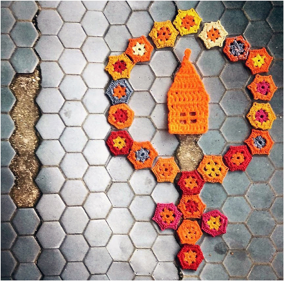 Figure 1. Artwork and Photo by Anne Le Maignan. A Crochet Intervention in a Wall, at the Metro, Madrid. With permission.