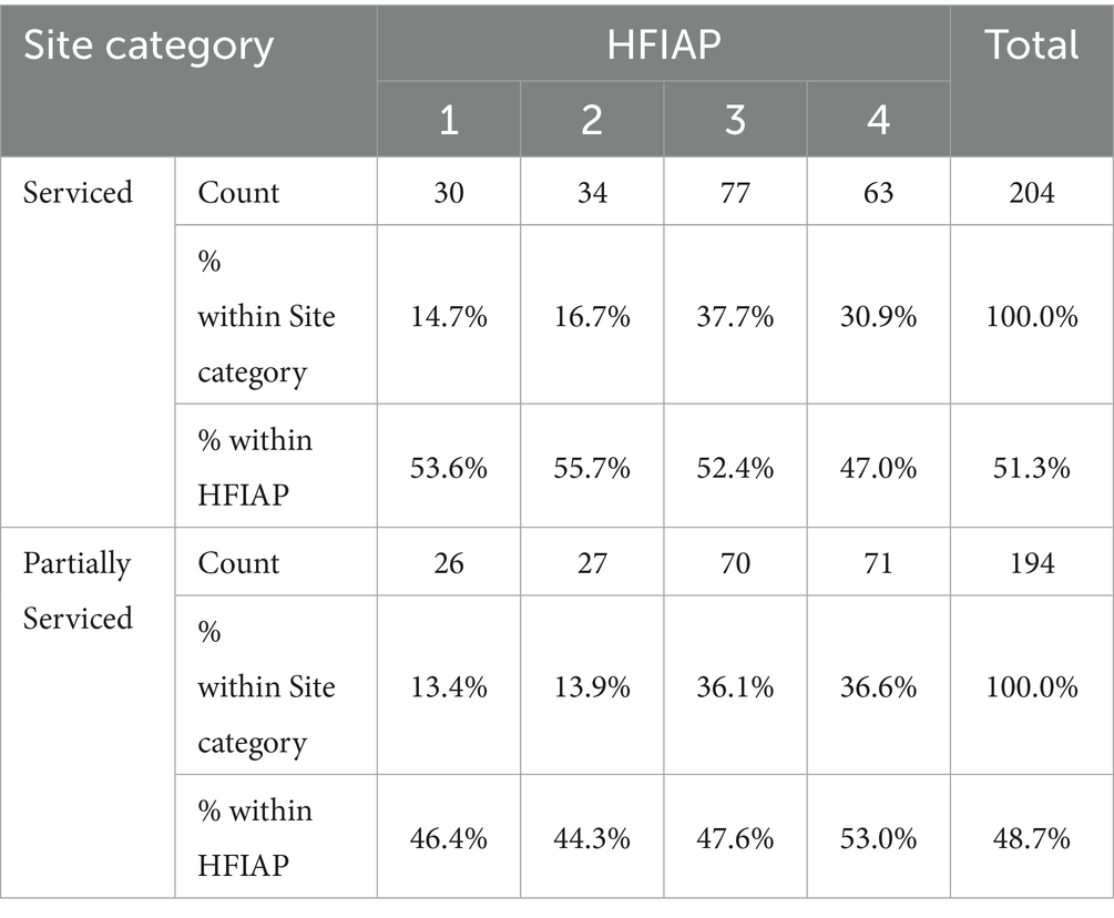 Figure 2. MAHFP scores distributed by site category. N = 398 (Serviced n = 204 and Partially Serviced n = 194).