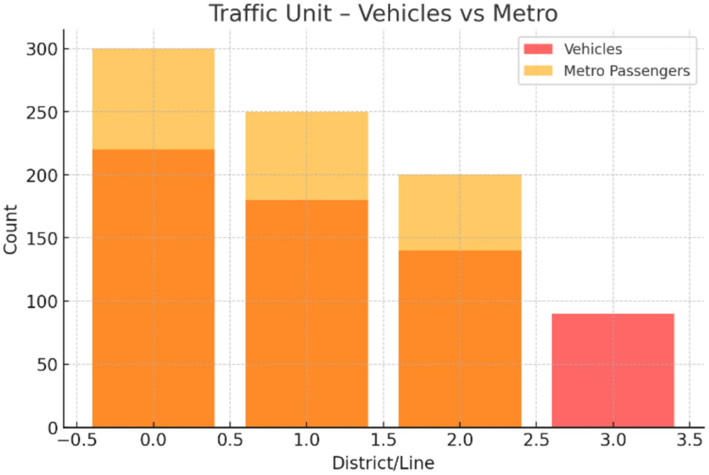 • Traffic Unit: Analyzes vehicle and metro data to identify congestion, estimate travel loads, and suggest intelligent rerouting strategies.