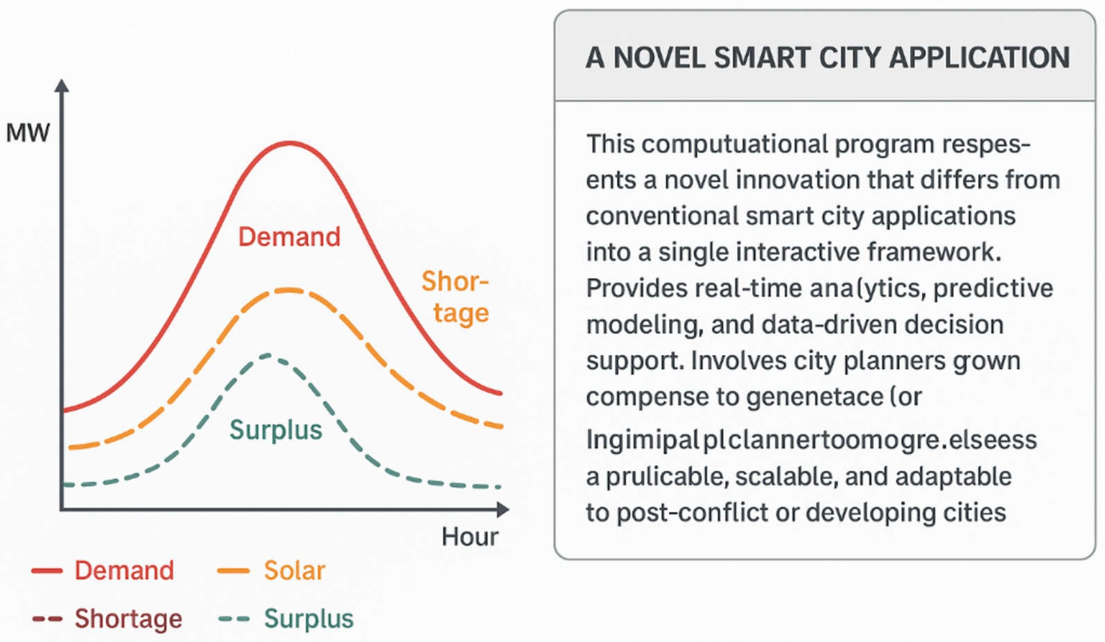 Applied to Baghdad as a case study, this innovation has transformative potential. The city faces chronic shortages in electricity, water distribution, healthcare staff, and transportation capacity, with conventional management approaches often reactive and limited to post-crisis interventions. The SSCB-App shifts this paradigm through predictive modeling and real-time data integration. For instance, the system can anticipate electricity shortages during hot summers and propose solar-battery solutions or identify potential water scarcity zones and suggest optimized distribution plans.