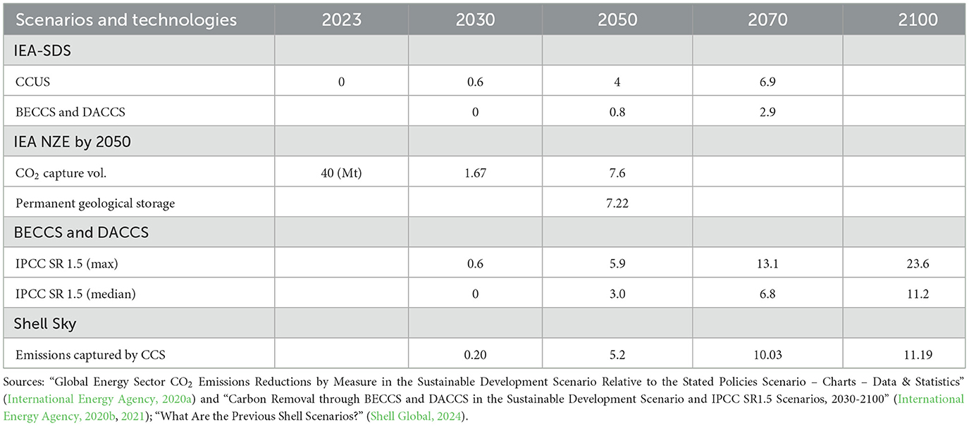 The IEA's Sustainable Development Scenario, the IPCC's 1.5 scenario, and the Shell Sky Scenario illustrate the massive extent to which CCS, carbon dioxide removals (CDR) and CO2 storage projects need to be deployed to reach climate objectives, as shown in Table 1.