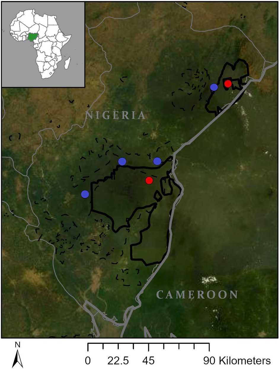 Local inhabitants of this region do not easily fall within the “hunter-gatherer”—“farmer” dichotomy, and are perhaps best characterized as hunter-agriculturalist societies that depend mainly on agriculture for staple food items and use a combination of wild and cultivated vegetables and animals (Rupp, 2003; Ewah, 2013; Friant et al., 2015; Lameed et al., 2015; Abere et al., 2016). Rural communities in this area depend on the forest for cooking fuel, farmland, and for non-timber forest products, including bushmeat. Forest protection prohibits, to some extent, agricultural expansion into protected areas. However, lax enforcement of laws has resulted in exploitation of forests for timber, construction of roads, agricultural land, and non-timber forest products. The ecological integrity of the forest is now severely threatened by a myriad of human activities, exacerbated by population explosion and high levels of poverty and unemployment (Mahmoud et al., 2017; Enuoh and Ogogo, 2018).