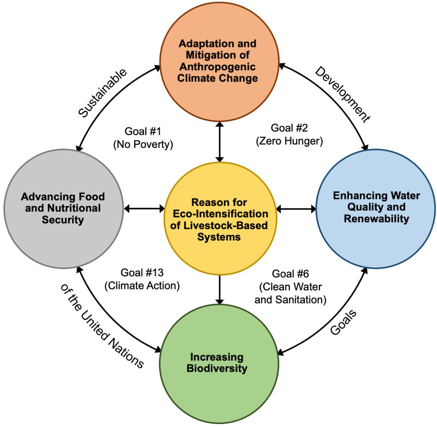 Eco-intensification of livestock-based systems to advance the Sustainable Development Goals of the United Nations.