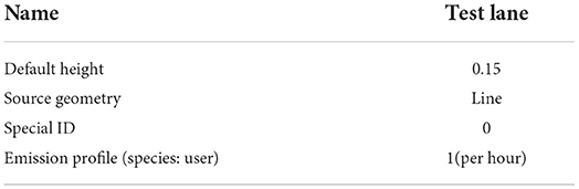 Modeling and placement of pollution sources and paths in each model were according to the scheme presented in Table 2. Since pollution concentration was significant for this research, the default sample was used in the software database, and the pollution profiles were not personalized.