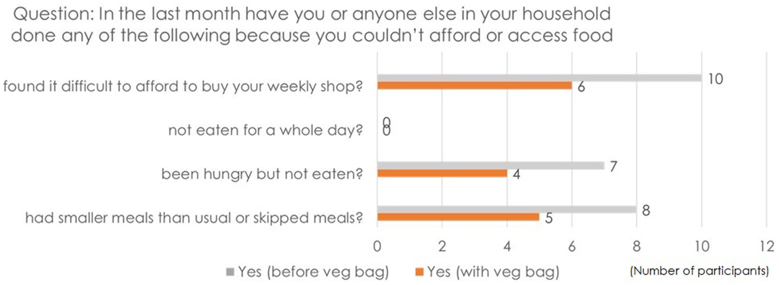 Figure 2. Assessment of food insecurity among participants before and during the delivery of the veg bags.