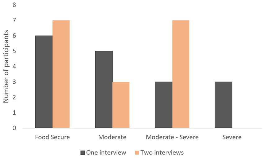 Figure 5. Number of participants that experience food insecurity. Here the comparison is made between the participants who completed one interview and then dropped out and those who completed two interviews.