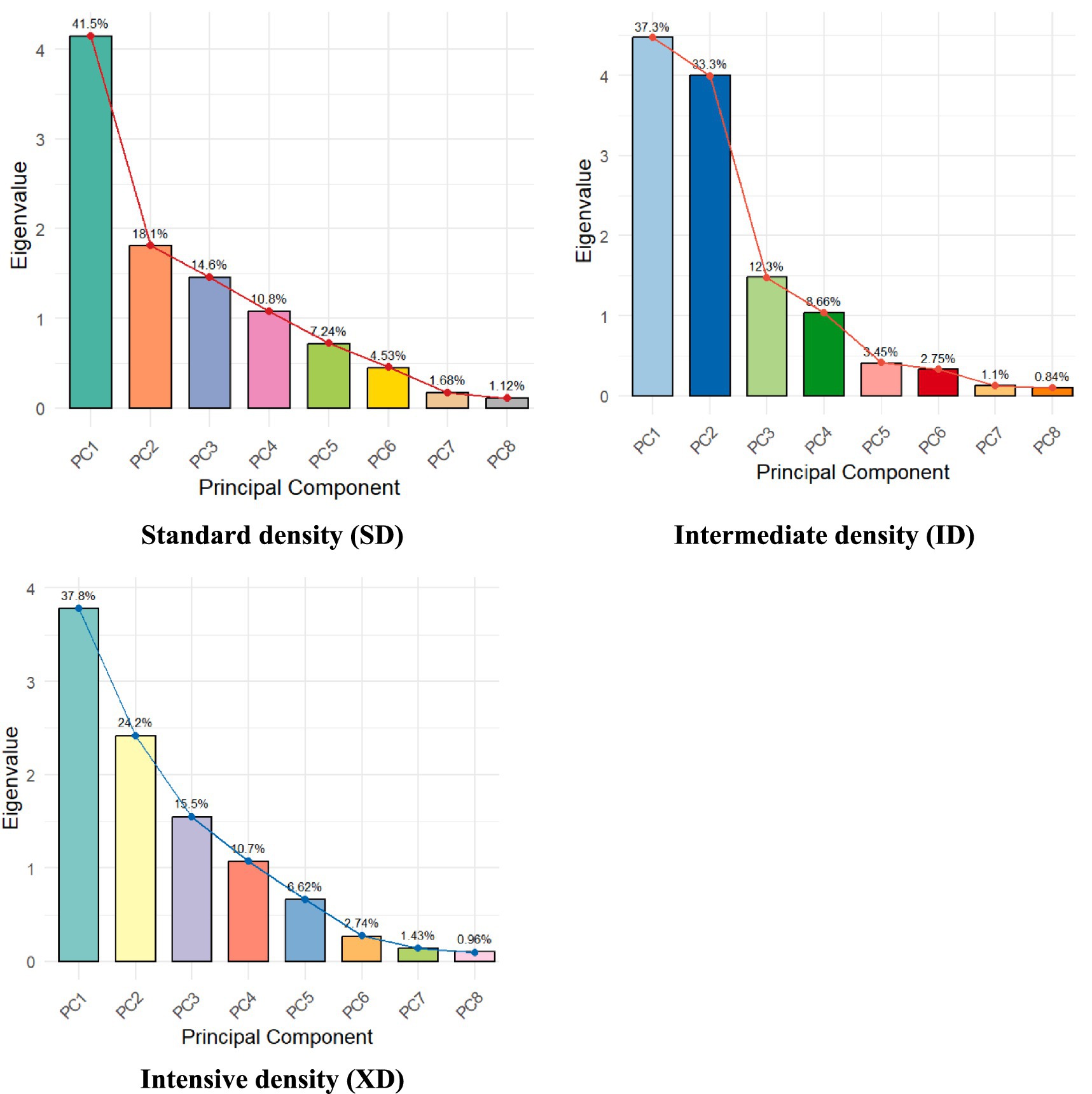 Figure 3. Eigenvalue and explained variance of morphophysiological traits of maize under three population densities.