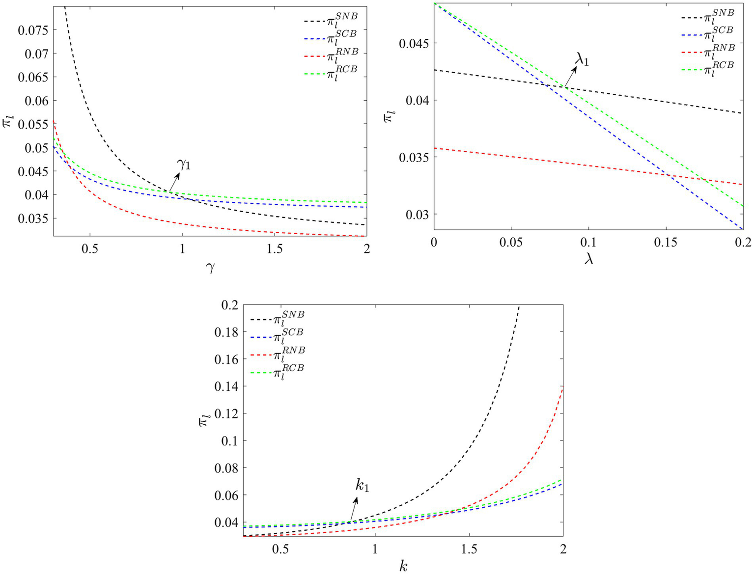 Conversely, when the R&D cost coefficient for carbon reduction is relatively low, the deterioration rate of fresh products is high, or consumer low-carbon preference is high, the 3PL can achieve greater profits under the SNB model. In this case, although the non-adoption of blockchain technology in the supply chain results in lower freight revenue, it avoids the significant profit compression caused by indirect blockchain losses. Additionally, compared to the RNB model, the total demand in the SNB model is higher to meet the needs of retailers, which further enhances the overall revenue of the 3PL.