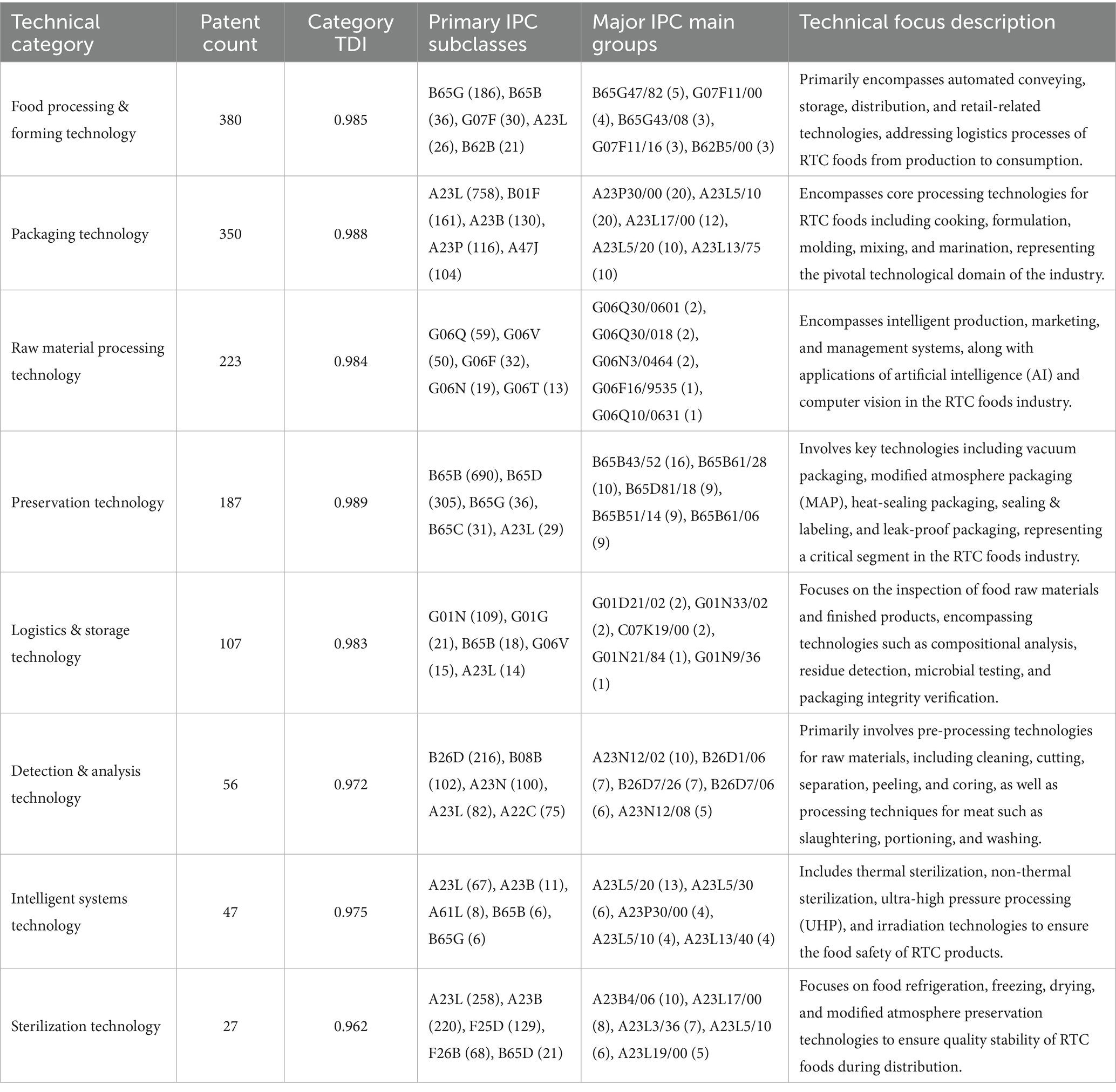 Table 2. Classification and characteristics of eight major technological domains in RTC foods innovation.