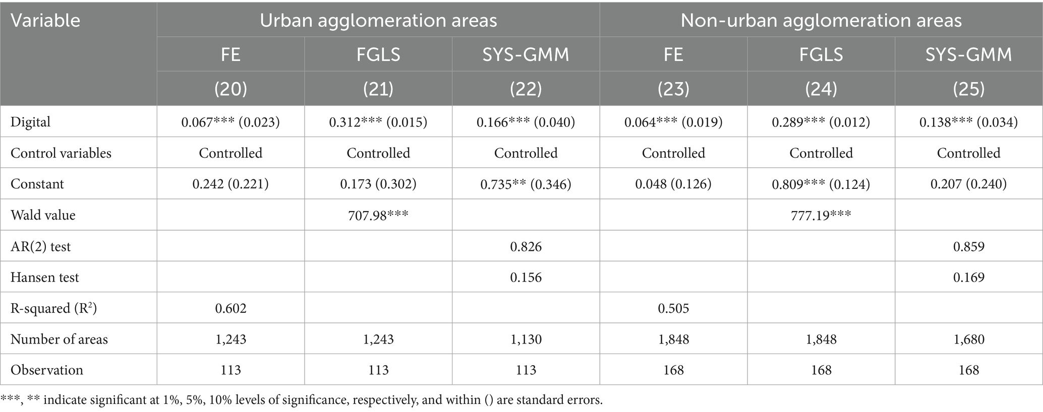 As the core areas of economic activities, urban agglomerations have become a unique regional identity. Therefore, this study further expands its focus to the dimension of urban agglomerations, examining the differences in the impact of the digital economy on rural revitalization between cities within urban agglomerations and those outside. The sample cities are divided into two groups: urban agglomeration cities and non-urban agglomeration cities, for a detailed analysis.