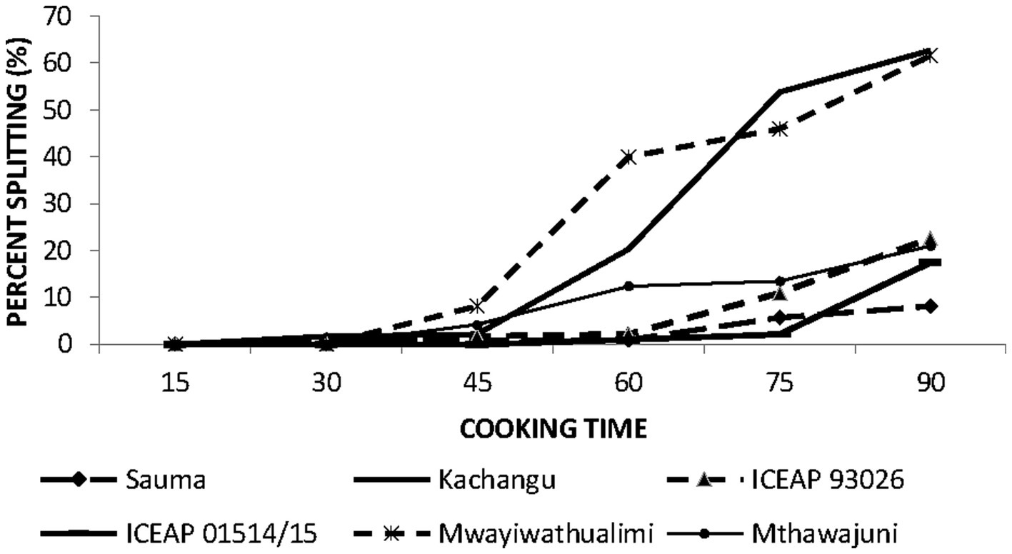 Seed coat integrity during thermal processing represents a critical quality parameter affecting consumer acceptance of cooked legumes. Split formation was not observed until 45 min of cooking, after which splitting incidence varied significantly among varieties.