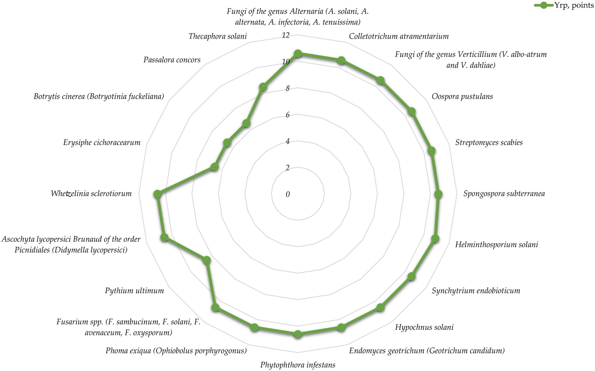 • Phytophthora infestans (Yrp = 10.6), which causes phytophthorosis (the disease has a high rate of development);