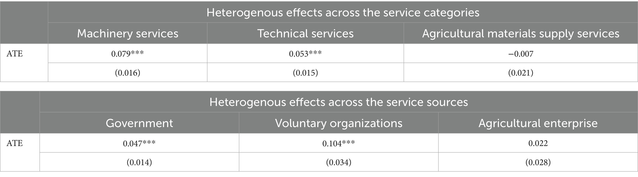 H3. The positive effect of agricultural services on grain production is heterogeneous across service sources.