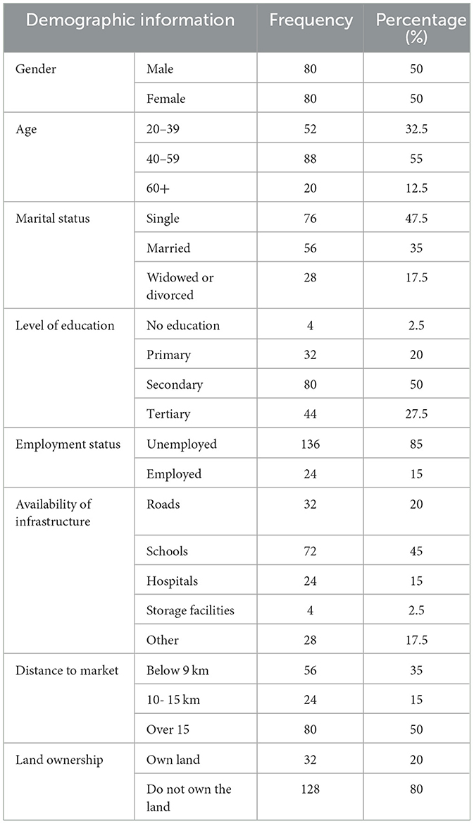 Respondents in the Eastern Cape had different socio-economic characteristics, including gender, age, marital status, level of education, employment status, availability of infrastructure, distance to market, and land ownership. These characteristics illustrate the conditions people in the chosen area live under. Findings from the study regarding the socio-economic conditions is represented in Table 2.