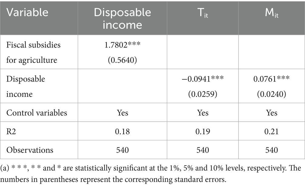 This study examines the impact of agricultural subsidies on cultivated land abandonment through rural residents’ income. The results indicate a substantial positive effect of agricultural subsidies on rural residents’ per capita income, consequently mitigating cultivated land abandonment. Specifically, the analysis in Table 10 reveals that a 1% rise in agricultural subsidies correlates with a 1.7802% increase in rural residents’ disposable income, thereby playing a crucial role in reducing cultivated land abandonment.