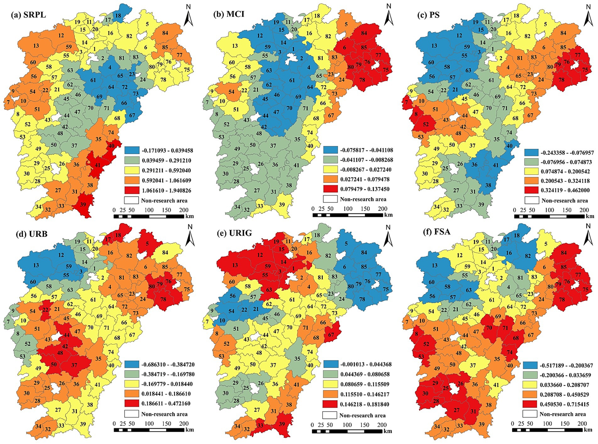 4.4 Spatiotemporal heterogeneity analysis of the influencing factors on the CCD between APS and RCE
