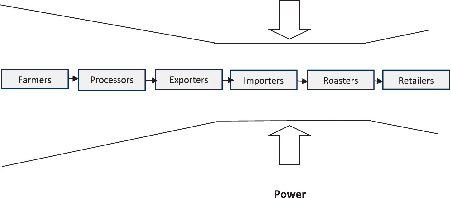 Figure 2. Concentration of power in global coffee supply chain. Source: Samoggia et al. (2025) (inspired by Borrella et al., 2015; Gereffi, 2018; Ponte, 2019).