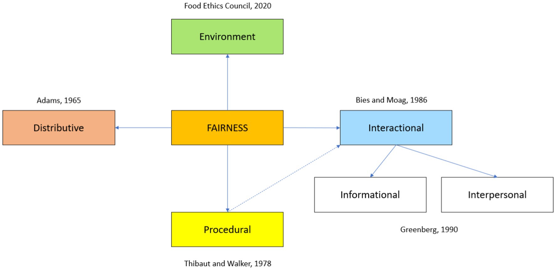 Fairness constitutes the central theoretical framework for this study. Often associated with equity and social sustainability, fairness is embedded in several Sustainable Development Goals (SDGs) of the United Nations’ 2030 Agenda. Recent literature identifies three primary dimensions: distributive, procedural, and interactional fairness (Samoggia and Beyhan, 2022). Distributive fairness concerns equitable allocation of tangible outcomes within the agro-food chain among stakeholders (Adams, 1965). Procedural fairness examines the processes achieving these outcomes, including negotiation mechanisms and actors’ perceptions of fairness (Thibaut and Walker, 1978). Interactional fairness assesses treatment of individuals within supply chains, considering courtesy, dignity, transparency, and respect (interpersonal fairness), plus access to decision-making information (informational fairness) (Bies and Moag, 1986; Samoggia and Beyhan, 2022; Samoggia et al., 2023). These three dimensions interact crucially to ensure social and economic sustainability by balancing benefits and burdens among all stakeholders.
