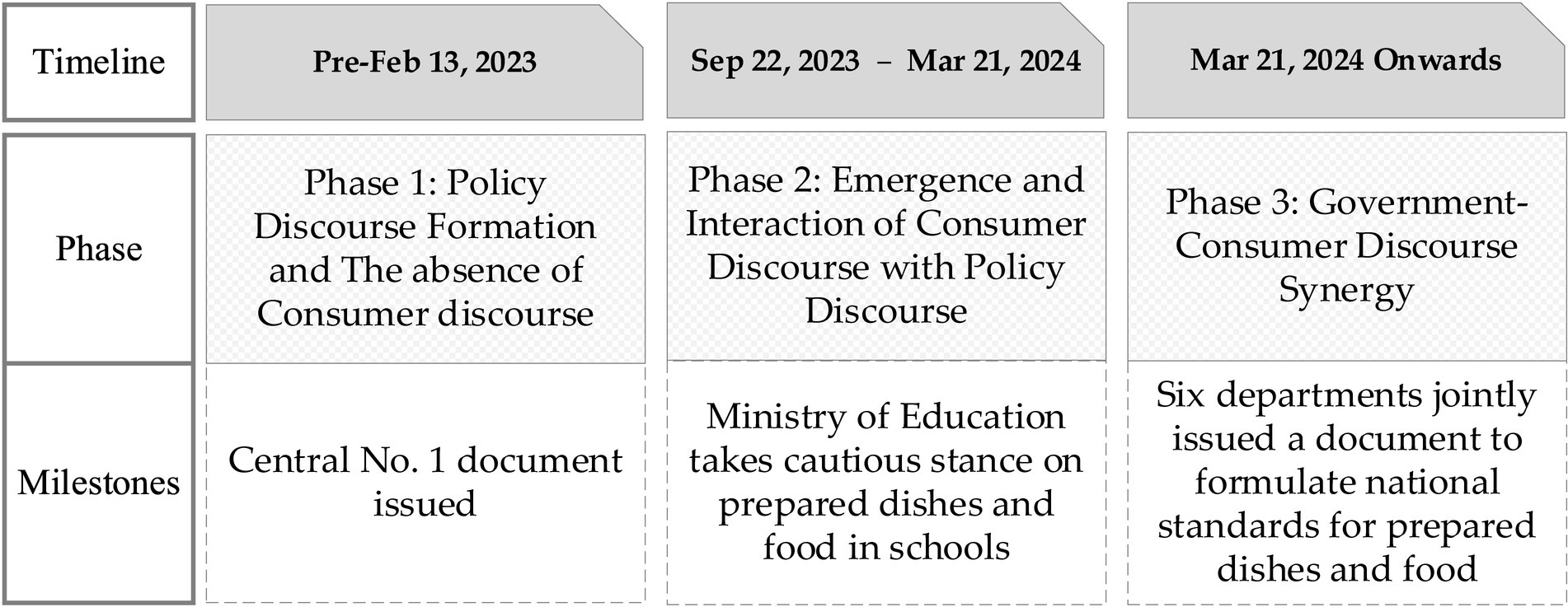 However, regulatory standards were not clearly communicated in theses policy discourse. At this stage, consumer discourse was notably absent as prepared dishes and food are a new concept to them, indicating that the public’s perspective had not yet been integrated. This top-down approach reflects an early developmental stage where industry norms and practices were defined mainly by enterprises and policy imperatives rather than by consumer needs or preferences.