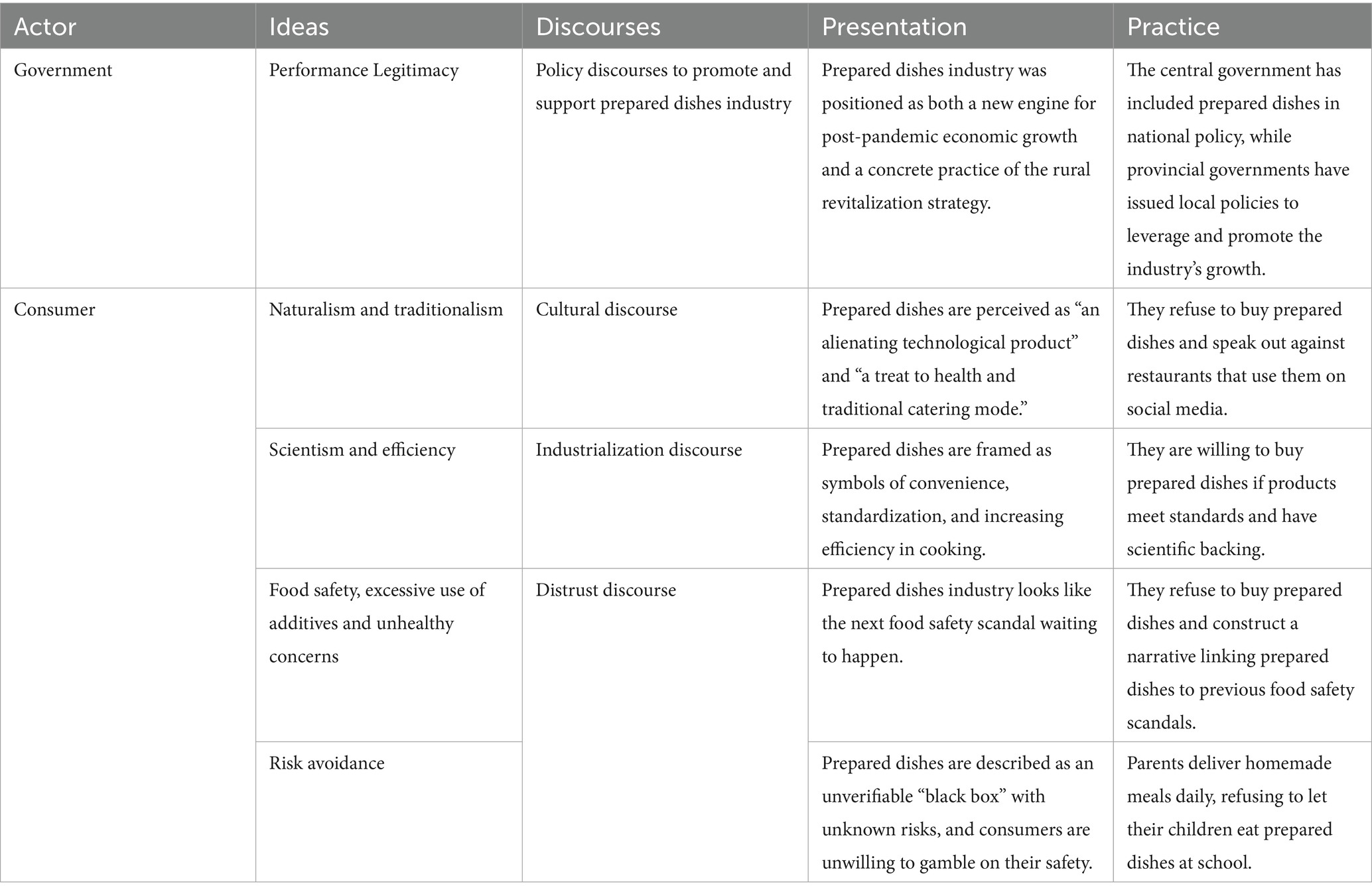 Secondly, the narratives and understandings of prepared dishes and food among different consumer discourses, as well as the relationship between consumer discourse and policy discourse, can be interpreted through the concept of discourse coalitions. For the theoretical approach adopted in this study, we found that the discourse analysis theory and discourse institutionalism proved to be useful for studying new food initiatives and policies (Fischer and Forester, 1993; Hajer, 1993; Schmidt, 2008; Sibbing and Candel, 2021). In this study, discourse serves not only as a vehicle for consensus-building between the government and consumers, influencing policy outcomes, but also as a key arena for the subtle negotiation, persuasion, and debates between the two (Schmidt, 2008). On one hand, the results of this study add new empirical evidence from China’s food sector to the consistence in the scholarship of food governance and indicates the importance of governments’ actions toward new food initiatives (Chen et al., 2023; Taufik et al., 2023; Yuan et al., 2025; Fröhlich, 2024), and the government continuous regulation and guidance on prepared dishes and food. On the other hand, this study justifies conclusions drawn by previous studies on consumer’s trust, attitudes and perspectives on different food and food fraud (Feng et al., 2023; Hristov et al., 2023; Macready et al., 2025; Morosan et al., 2025; Sahin and Gul, 2023; Xing et al., 2022), and further finds out that consumers leverage discourse as a means to advocate for broader culture, food safety and trust in consumption and stringent regulation measures from government for a new food initiative and for the industrialization of food sector.