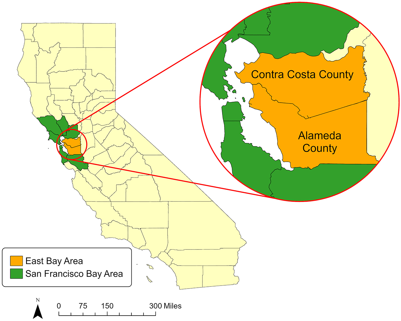 Figure 1. The San Francisco East Bay, a subset of the greater San Francisco Bay Area including Contra Costa and Alameda Counties.