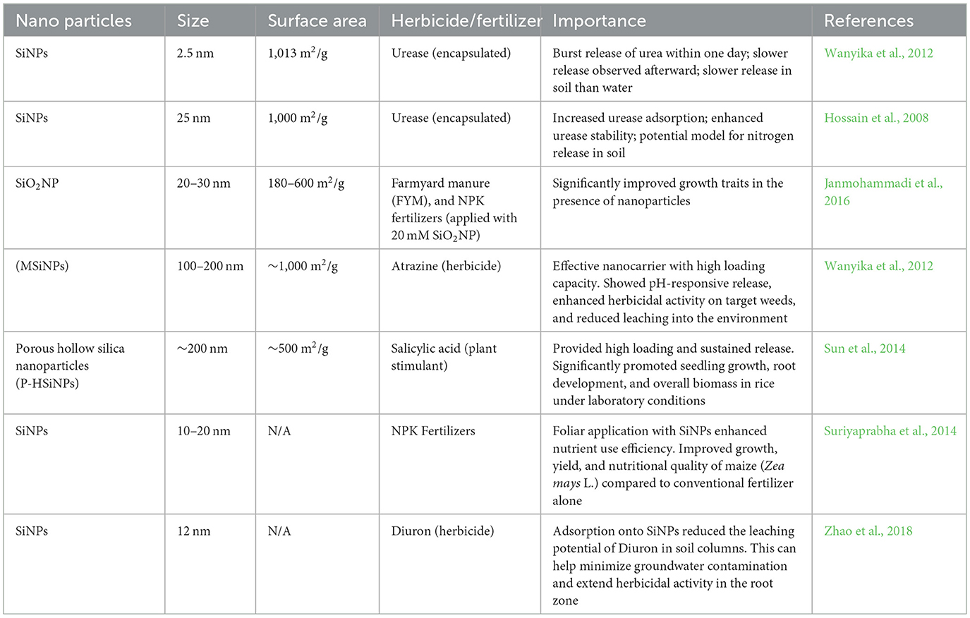 Table 3. Characteristics and agricultural significance of silica nanoparticles in nutrient and herbicide delivery.