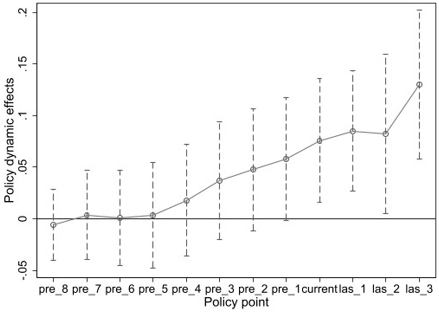 Secondly, while the difference-in-differences (DID) model is an effective causal inference method, it relies on the parallel trends assumption, which assumes that the treated and control groups would have followed the same trend in the absence of the policy. Although our robustness checks support this assumption, there may still be unobserved factors or external shocks not accounted for, which could influence the outcomes. However, we have conducted several robustness tests to mitigate this potential bias and ensure the reliability of our results.
