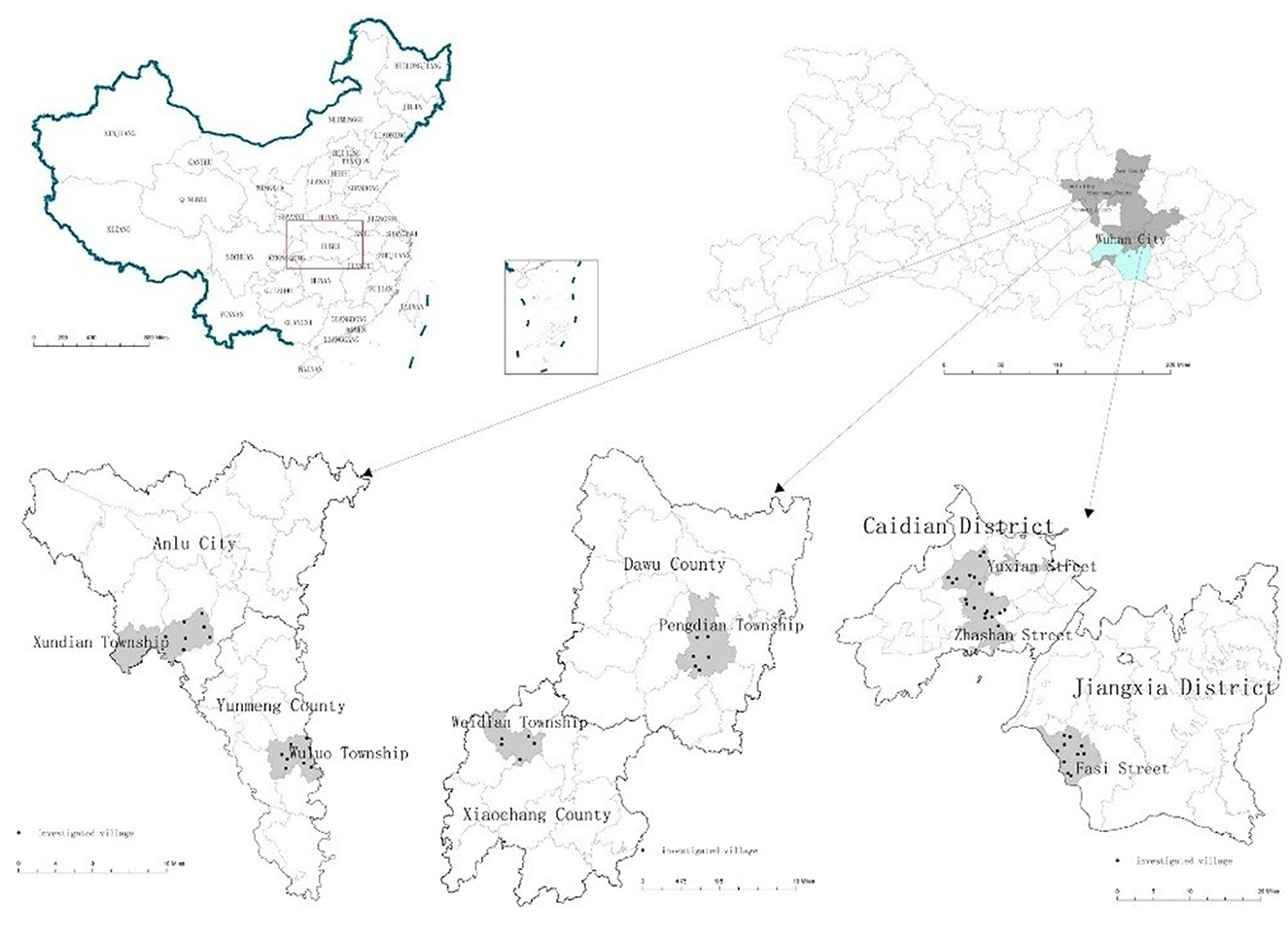 The data comes from the household survey with the theme of “household multifunctional farmland use” conducted by the research group in rural areas of Hubei Province in 2021. The study area is selected from the three Main Functional Zones determined by the “Main Function Zoning of Hubei Province” (MFZH). Due to funding constraints and the size of our research team, the survey series was tracked at the village level rather than continuously at the household level. Household level data include the characteristics of the household population, income, farmland renting-out, and land resources; village-level data include the characteristics of transportation, economy, and land use of the survey village.
