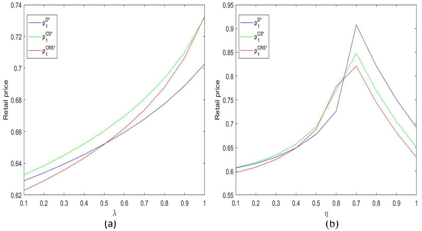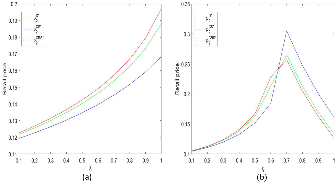 Regarding product pricing, Yan et al. (2021) explored the pricing and coordination decisions of a dual-channel supply chain under decentralized decision-making in a demand disruption context. Hosseini-Motlagh et al. (2019) investigated the optimal pricing, sustainability level, and CSR decisions of a reverse supply chain (RSC) system under demand disruption. Pi et al. (2019) studied competitive and cooperative product pricing strategies in a dual-channel supply chain consisting of one manufacturer and two retailers under demand disruptions. Rahmani and Yavari (2019) examined pricing decisions and green inputs in a green supply chain under demand disruptions. Zhai et al. (2022) analyzed pricing decisions under demand disruptions in the presence of different power structures.