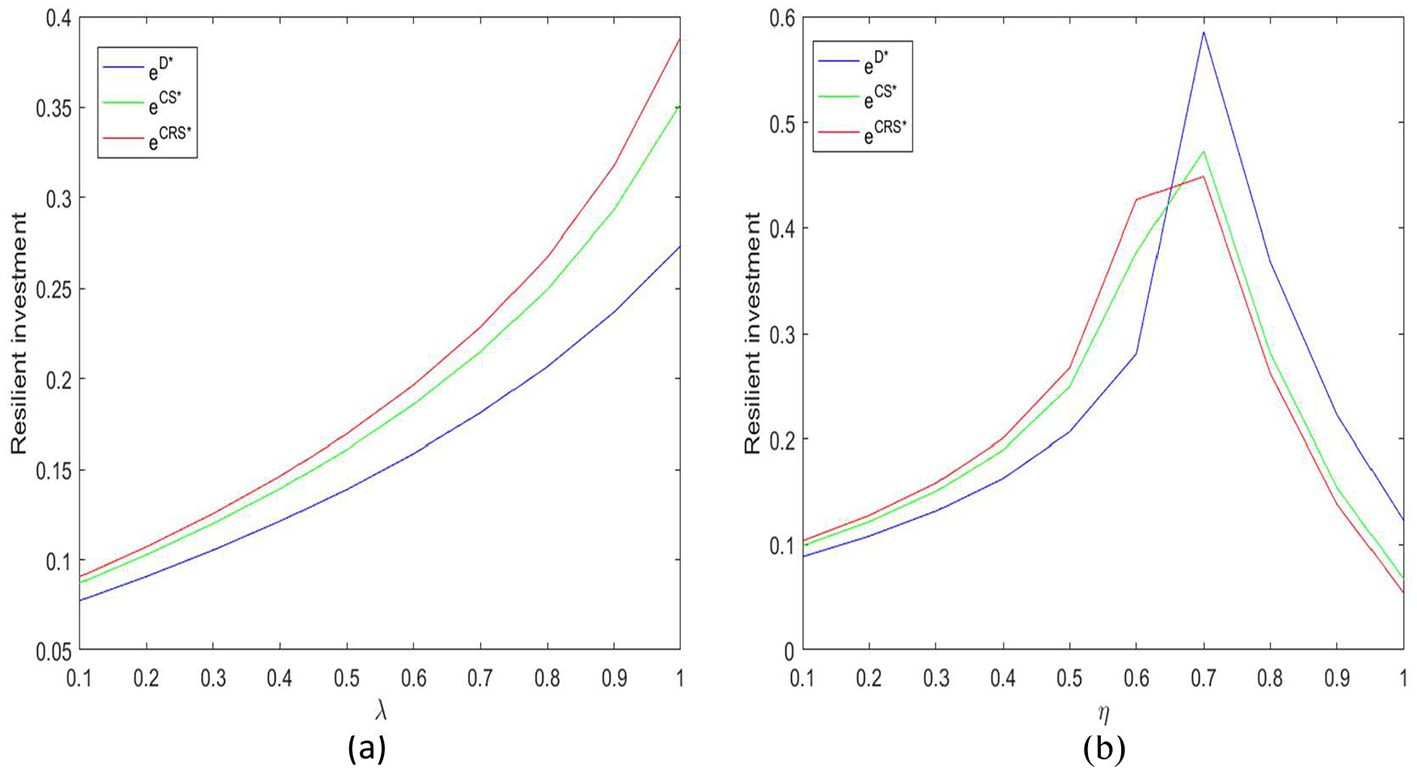 Conclusion 1 When , the resilience investment under centralized decision-making increases as the supply chain resilience investment efficiency coefficient increases.
