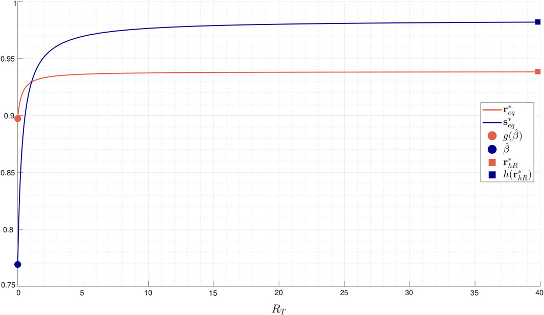 Figure 4 reports, for an illustrative set of parameters, equilibrium values