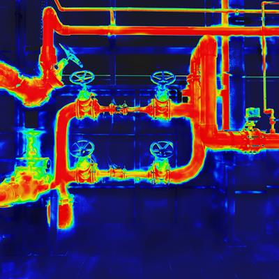 Steam piping with thermal insulation in Boiler of power plant (Blue tone filtered)