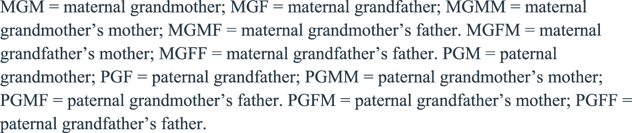 MGM, maternal grandmother; MGF, maternal grandfather; PGM, paternal grandmother; PGF, paternal grandfather.