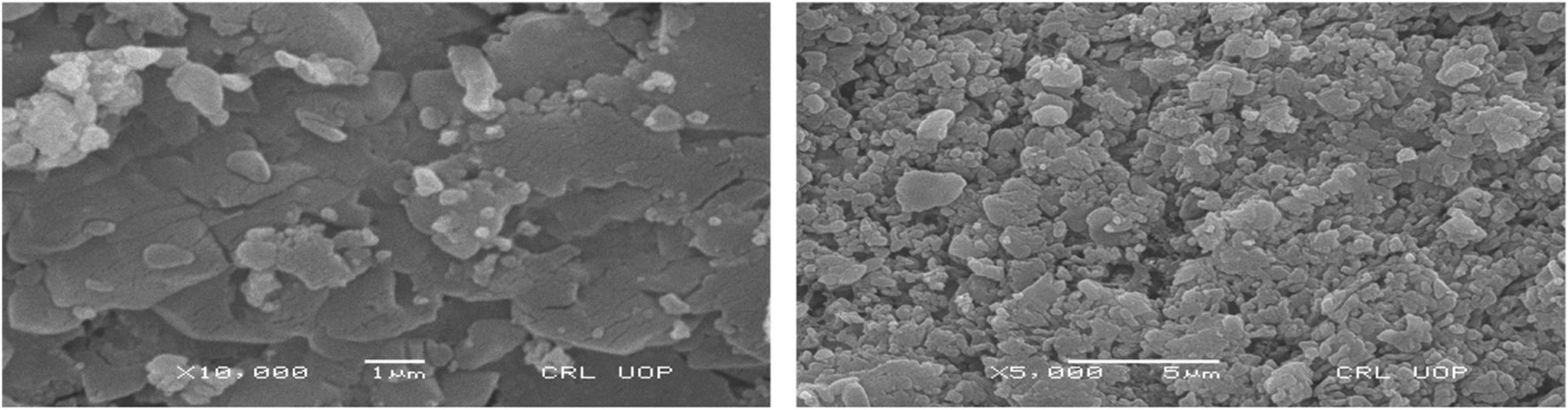 The synthesized NCs were characterized by elemental analysis (EDX), scanning electron microscopy (SEM), and X-ray crystallography (XRD) before the removal of the acid dye, which affected the adsorption process. The size and morphology of the NCs were characterized using scanning electron microscopy (SEM), and XRD analysis was performed to find out the size and shape of the NCs.