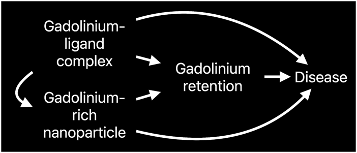 Gadolinium-based contrast agents are increasingly used in clinical practice. While these pharmaceuticals are verified causal agents in nephrogenic systemic fibrosis, there is a growing body of literature supporting their role as causal agents in symptoms associated with gadolinium exposure after intravenous use and encephalopathy following intrathecal administration. Gadolinium-based contrast agents are multidentate organic ligands that strongly bind the metal ion to reduce the toxicity of the metal. The notion that cationic gadolinium dissociates from these chelates and causes the disease is prevalent among patients and providers. We hypothesize that non-ligand-bound (soluble) gadolinium will be exceedingly low in patients. Soluble, ionic gadolinium is not likely to be the initial step in mediating any disease. The Kidney Institute of New Mexico was the first to identify gadolinium-rich nanoparticles in skin and kidney tissues from magnetic resonance imaging contrast agents in rodents. In 2023, they found similar nanoparticles in the kidney cells of humans with normal renal function, likely from contrast agents. We suspect these nanoparticles are the mediators of chronic toxicity from magnetic resonance imaging contrast agents. This article explores associations between gadolinium contrast and adverse health outcomes supported by clinical reports and rodent models.