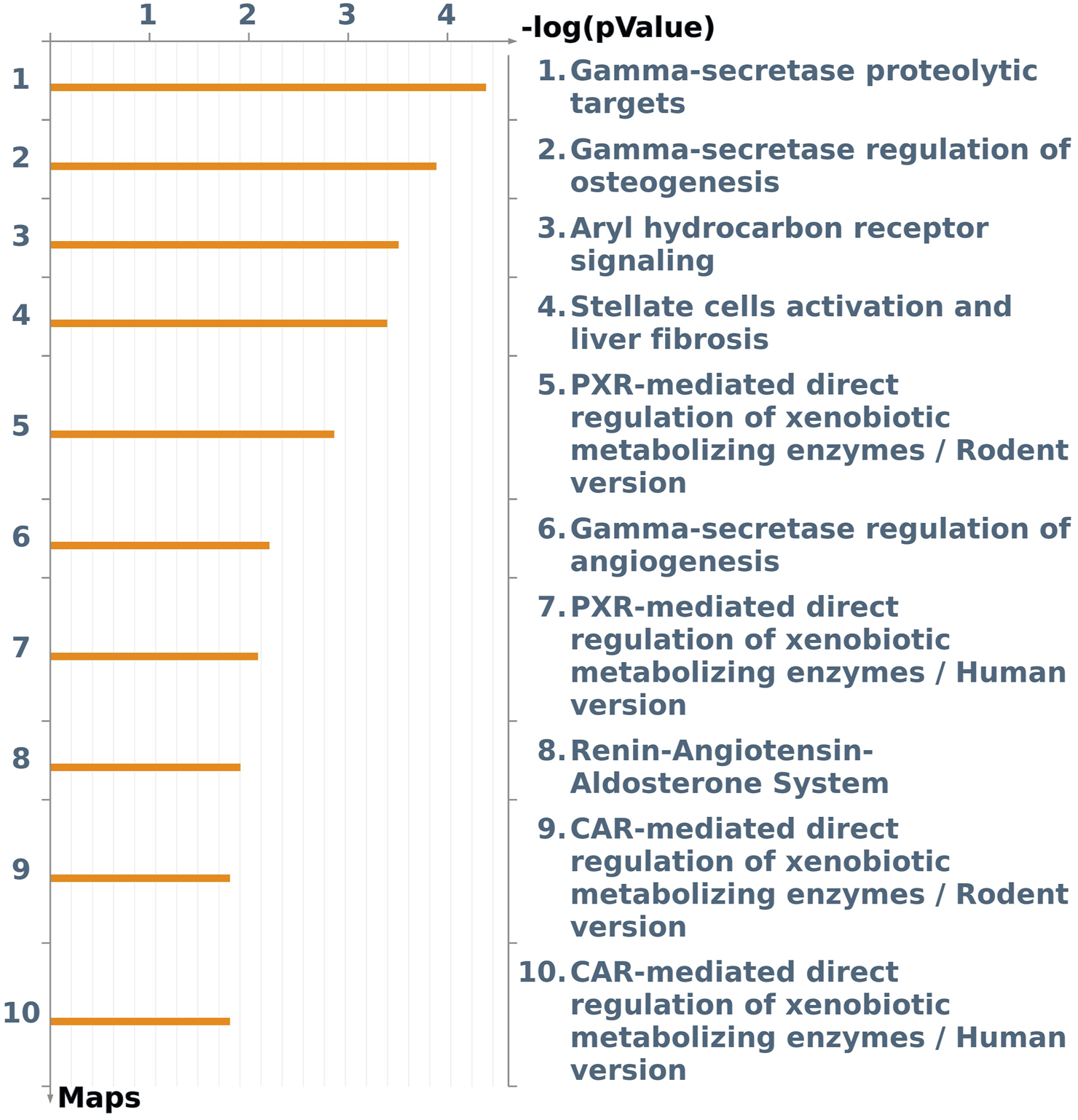Pathway enrichment analysis helps highlight mechanistic insights into gene lists generated from genome-wide transcriptomic experiments. The Pathway map Ontology Enrichment Analysis scored and sorted 5,573 network objects and more than 200 perturbed pathway maps with false discovery rate (FDR) < 0.05 (Supplementary Table S2).