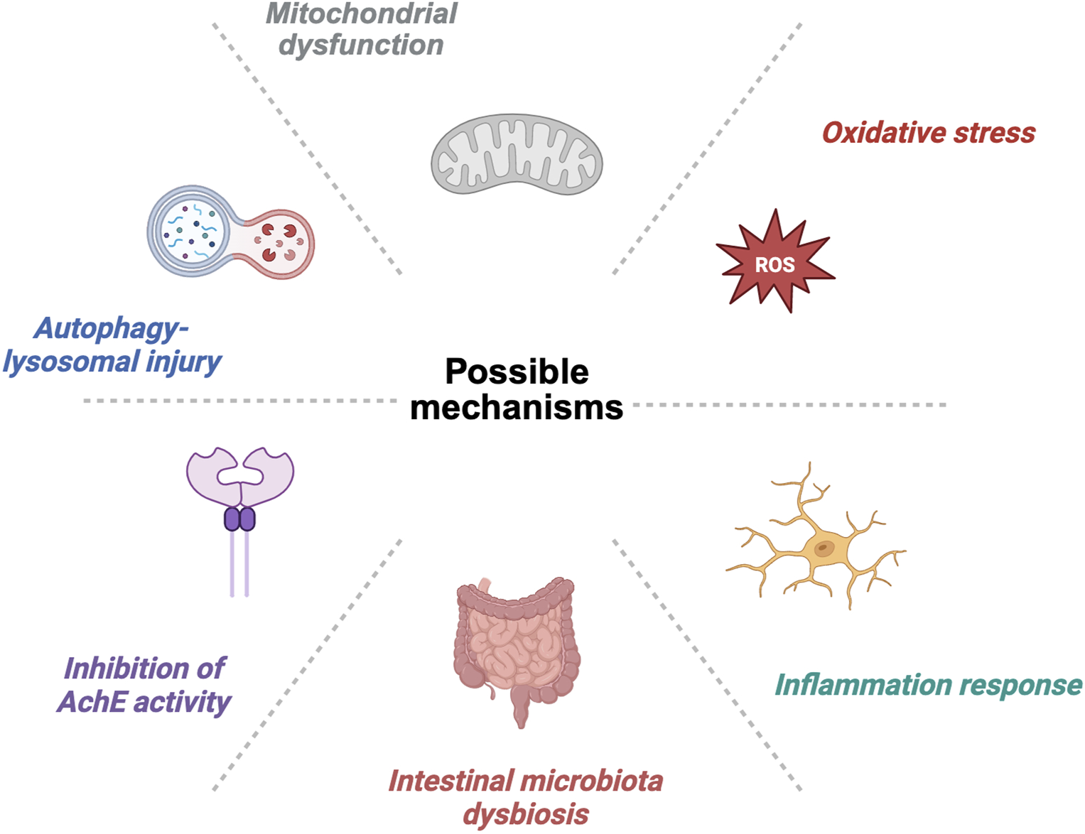 Microplastics may also affect nervous system health by impairing the autophagy–lysosomal pathway. Autophagy is an important cellular mechanism for removing damaged and redundant organelles, with lysosomes playing a key role in this process. Dysfunction of the autophagy–lysosomal system may also lead to the accumulation of harmful substances in neuronal cells, potentially contributing to the onset and progression of neurodegenerative diseases (Chularojanamontri et al., 2024). The recovery of autophagy–lysosomal system function plays an important role in the improvement of traumatic brain injury and ischemia–reperfusion injury-induced brain injury (Liu H. et al., 2024; Woo et al., 2025). Studies have shown that exposure to microplastics may lead to autophagy dysfunction, which, in turn, affects intracellular metabolic processes and clearance pathways (Fang et al., 2025). However, whether microplastic exposure affects behavior and neurological function through the autophagy–lysosomal pathway still requires further research for verification. Therefore, investigating the effects of microplastics on the autophagy–lysosome pathway can help reveal potential neurotoxic effects.