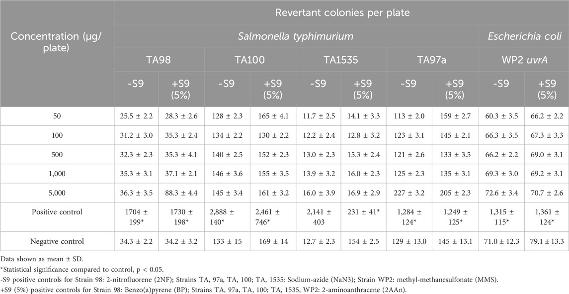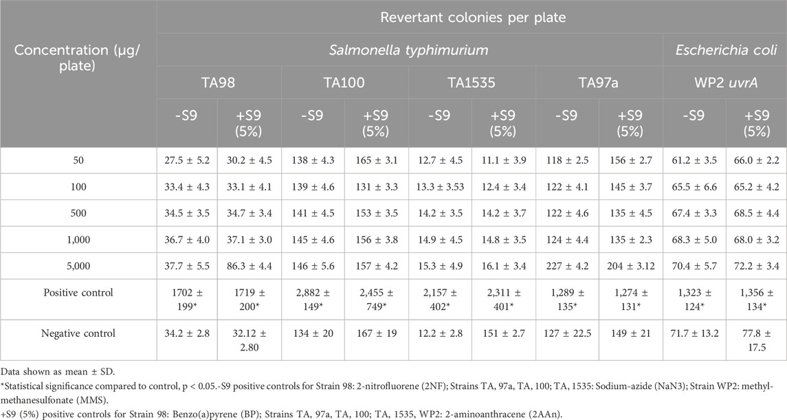 OECD (2020). “Test no. 471: bacterial reverse mutation test,” in OECD guidelines for the testing of chemicals, section, 4. Paris: OECD Publishing. doi:10.1787/9789264071247-en