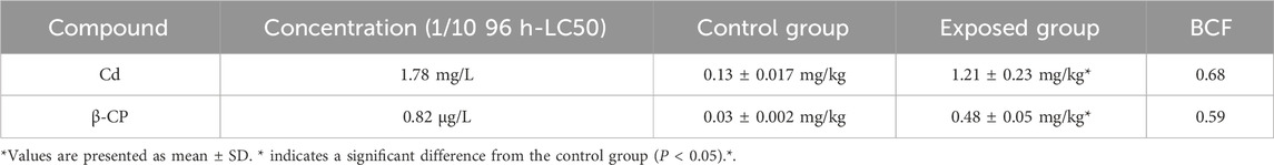 Table 4. Residual concentrations and bioconcentration factors (BCF) of Cd and β-CP in zebrafish under chronic exposure (n = 4).