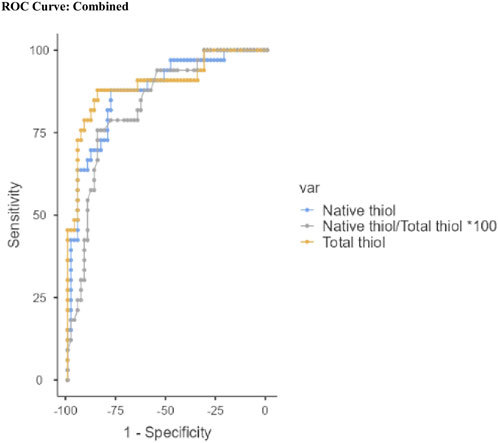 Additionally, thiol/disulfide homeostasis parameters were assessed using a fully automated spectrophotometric method based on dynamic thiol–disulfide exchange reactions. The following parameters were recorded: native thiol (µmol/L), total thiol (µmol/L), and disulfide (µmol/L). Ratios of disulfide/native thiol and disulfide/total thiol were calculated to assess oxidative stress balance.