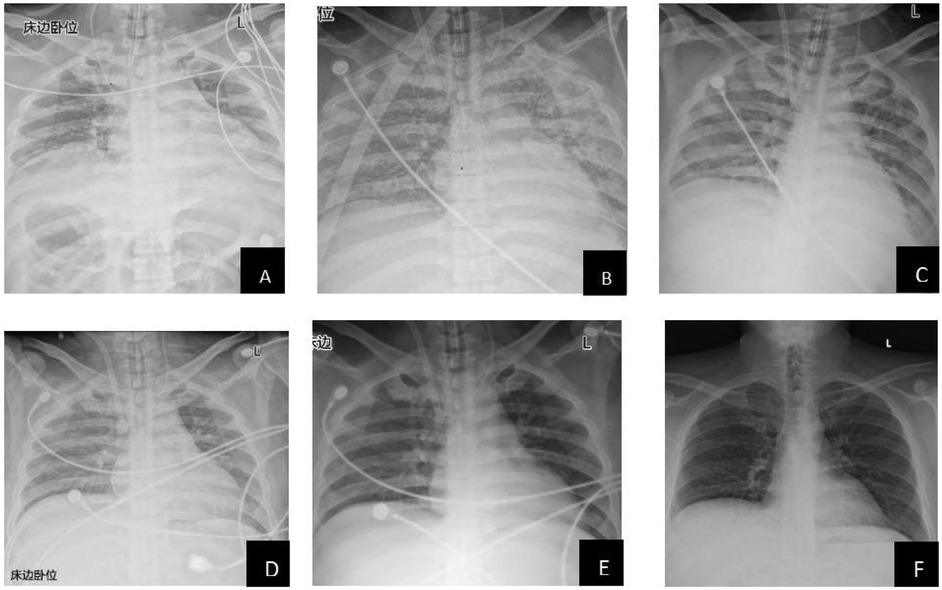 Figure 1. Radiological changes in the patient's lungs (A: preoperative; B: 1 day postoperatively; C: 2 days postoperatively; D: 3 days postoperatively; E: 4 days postoperatively; F: 9 days postoperatively). This study was approved by the relevant institutional review board/ethics committee, and informed consent was obtained from the patient.
