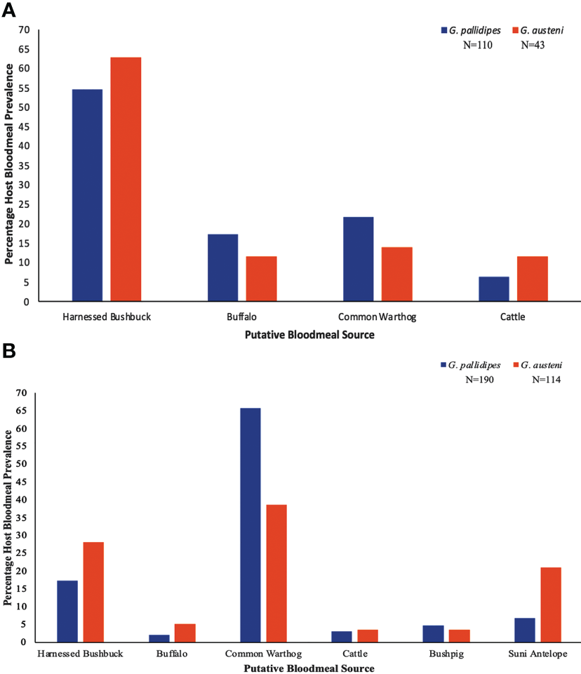 We therefore initiated this study to see if there are differences in feeding profiles of sympatric G. austeni and G. pallidipes during 2021 and 2022 in Shimba Hills National Reserve, as revealed by their bloodmeals and associated vertebrate hosts.