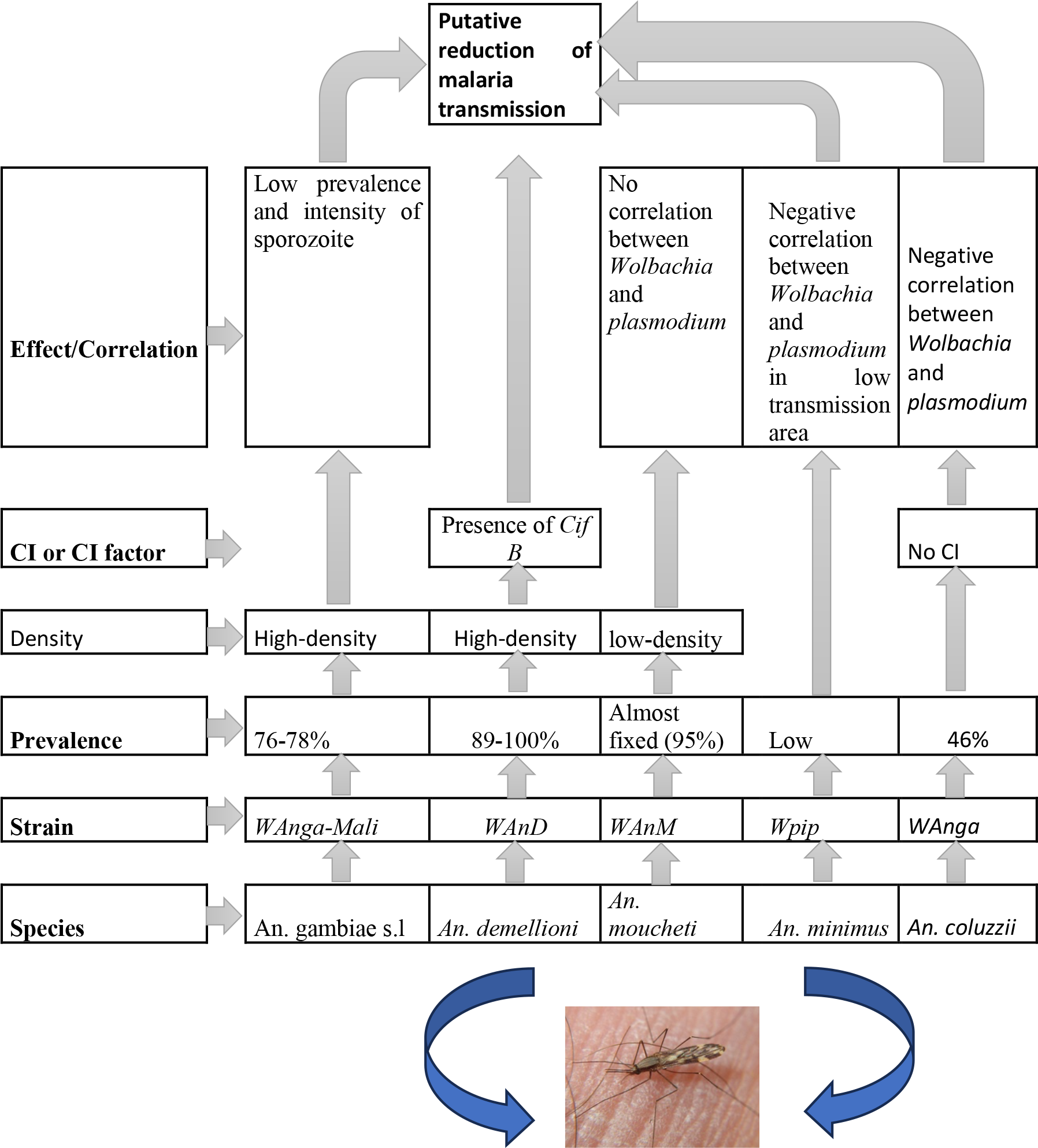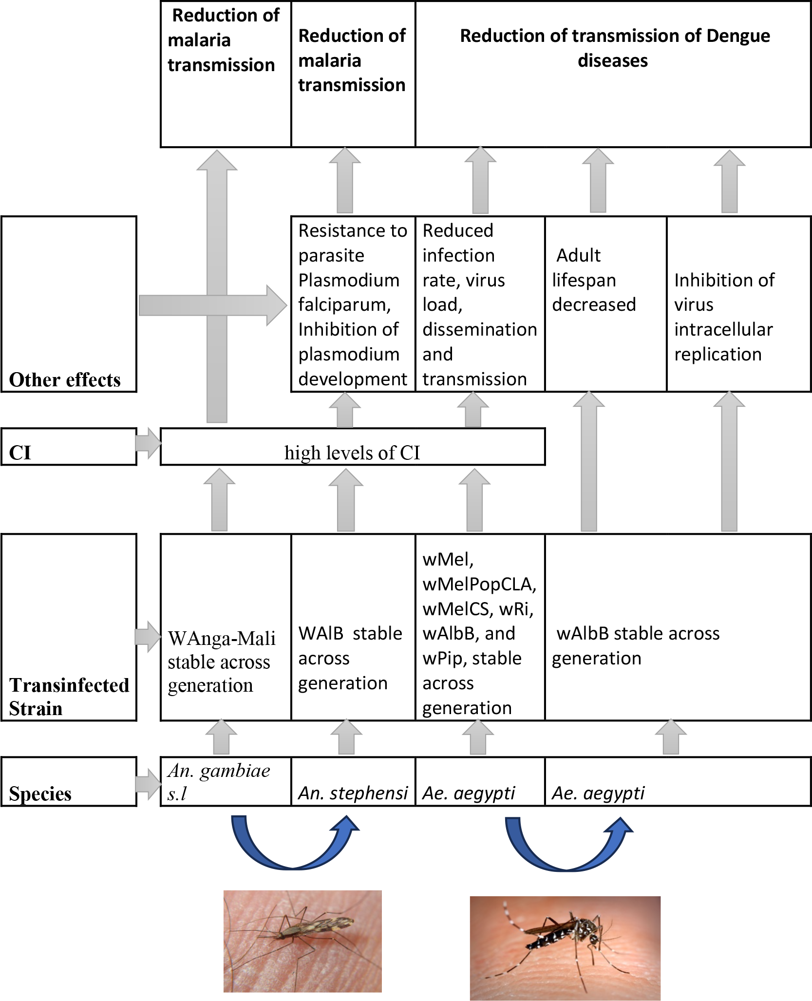 Wolbachia , Aedes aegypti , Anopheles sp. prevalence, cytoplasmic incompatibility, vector control